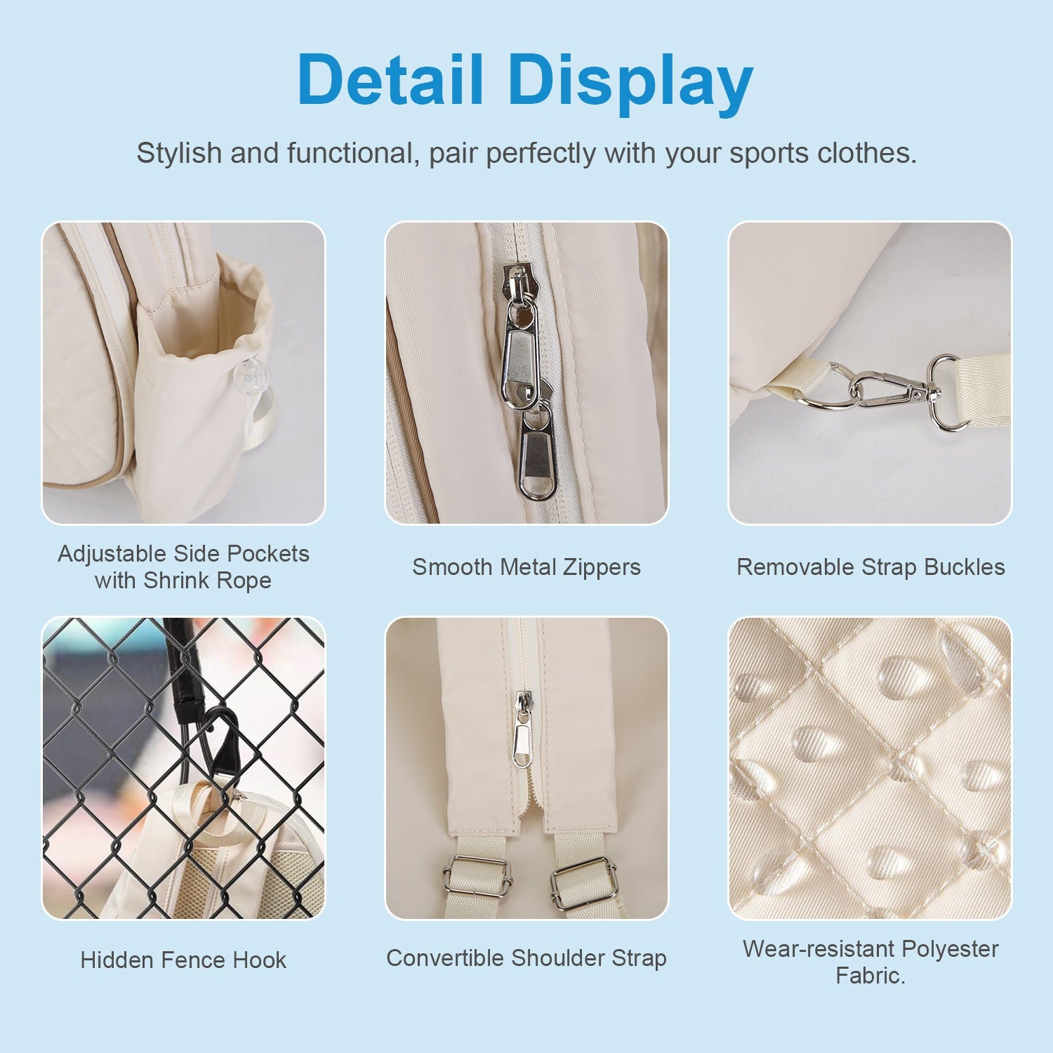 Includes a hidden fence hook so you can hang the bag courtside for easy access and to keep it off the ground.