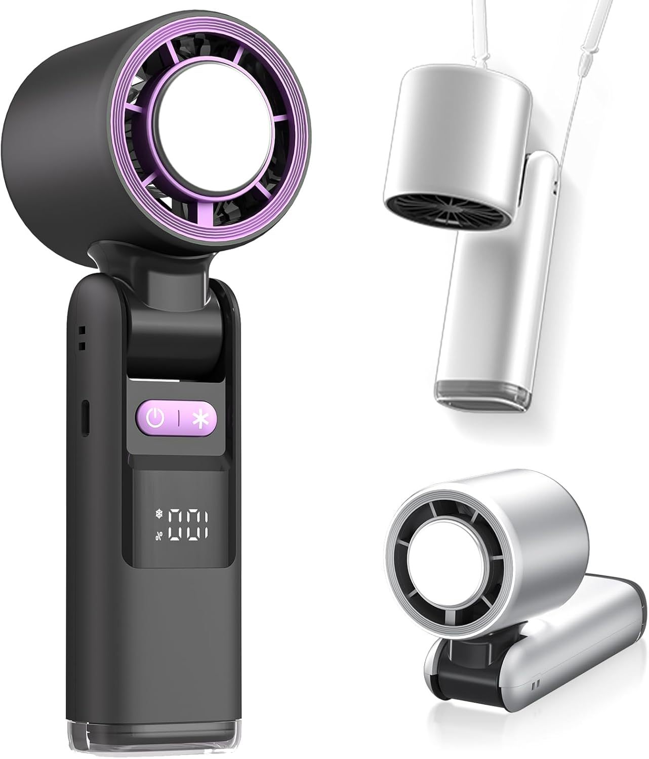 Portable Handheld Fan, Speed Adjustable Turbo Mini Fan, Reduced Temperature Mode, Rechargeable Digital Display Foldable Personal Fan With Night Light, Suitable For Women Men Outdoor